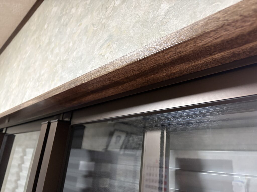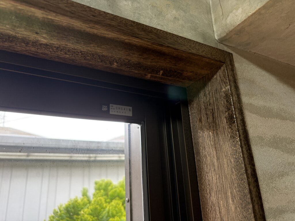 仕上げ(OP仕様)で仕上げます。既存の木枠に調色して交換しない部分と違和感が無い様に塗装します
