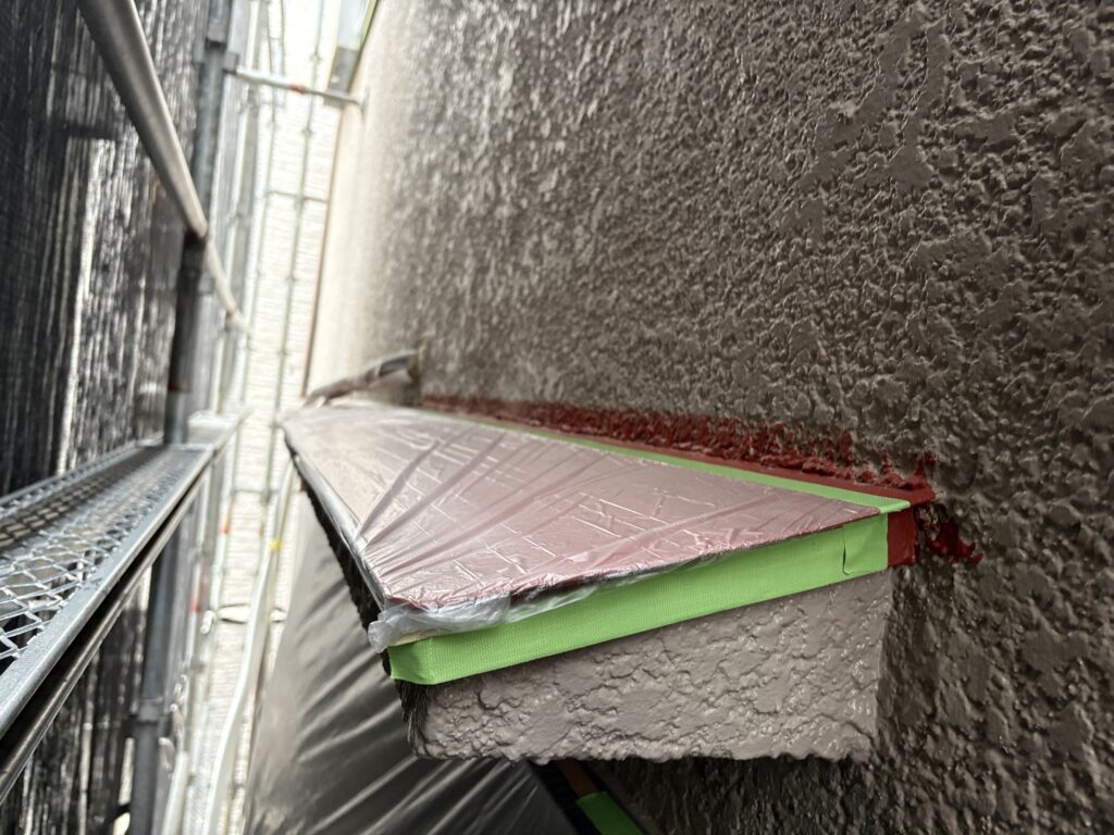 を行いました。養生は塗装が終わって剥がした時にラインが真直ぐになる様に貼ります。